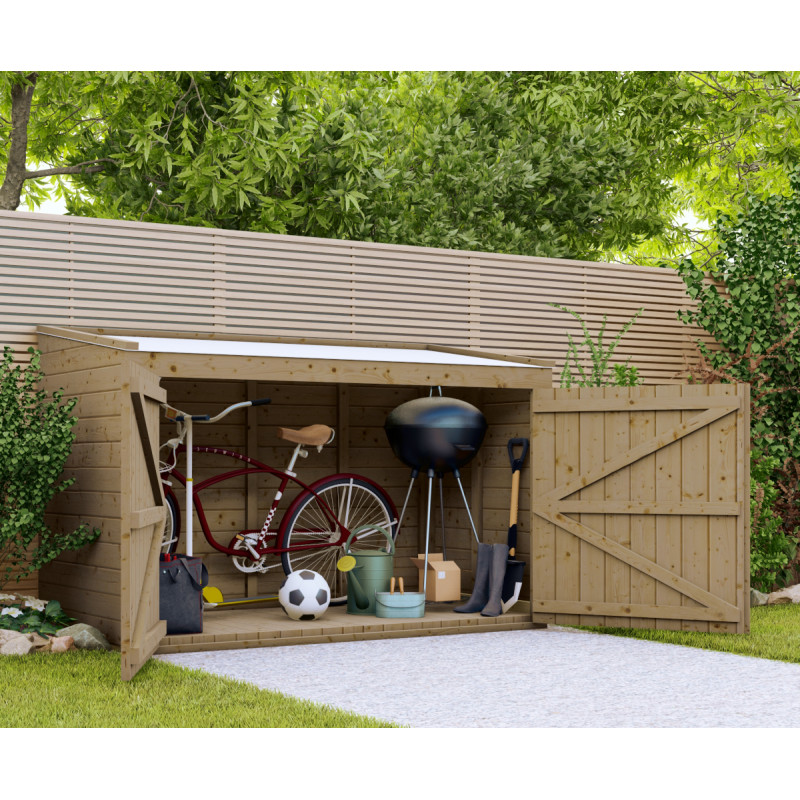 Large coffre de jardin, il est également profond et permet le stockage au sol de produits et d’articles de jardin ou de sport vraiment encombrants. Local technique pour votre piscine, cache-poubelles pour rendre votre jardin plus agréable, ou encore coffre à vélos pour garder vos bicyclettes à l’abri des intempéries, ce coffre Largo de Gardy Shelter est multifonctions !