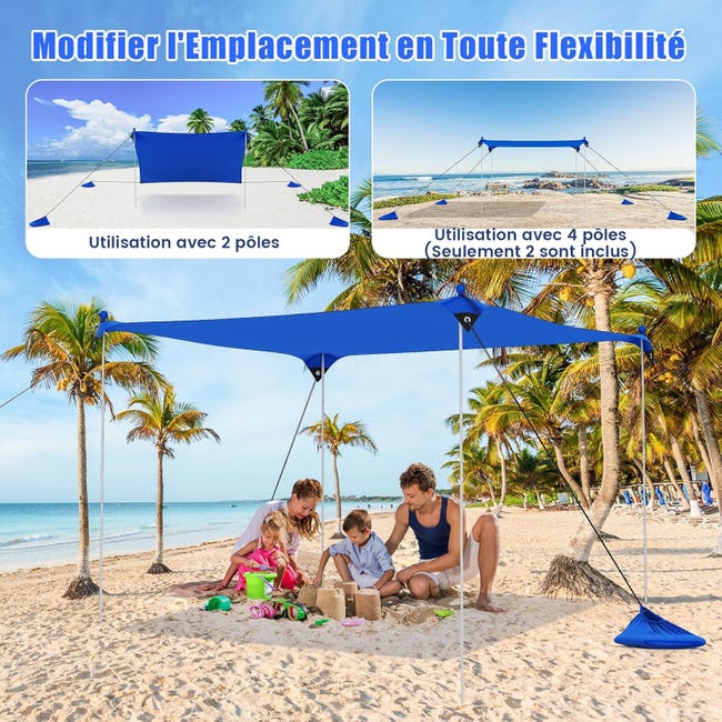 Accueil Barnum et tente de réception COSTWAY Tente de Plage Portable 3 x 3 M Anti UV UPF50+, Abris Solaire de Plage avec 4 Sacs pour Sable Piquets de Sol 2 Poteaux Sac de Transport (Bleu)