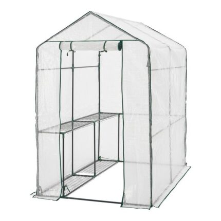 Serre de jardin Oosterhout en acier et polyéthylène avec étagères intégrées 120 x 186 x 190 cm [en.casa]