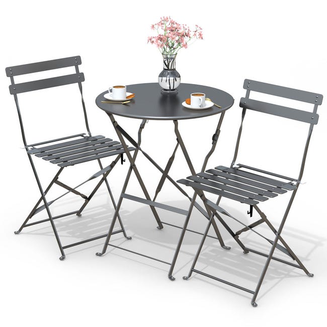 Ensemble bistro extérieur 1 table 2 chaises acier gris