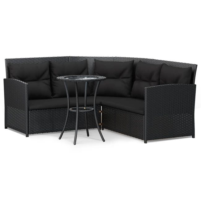 Salon de jardin 3 pcs avec coussins noir résine tressée vidaXL