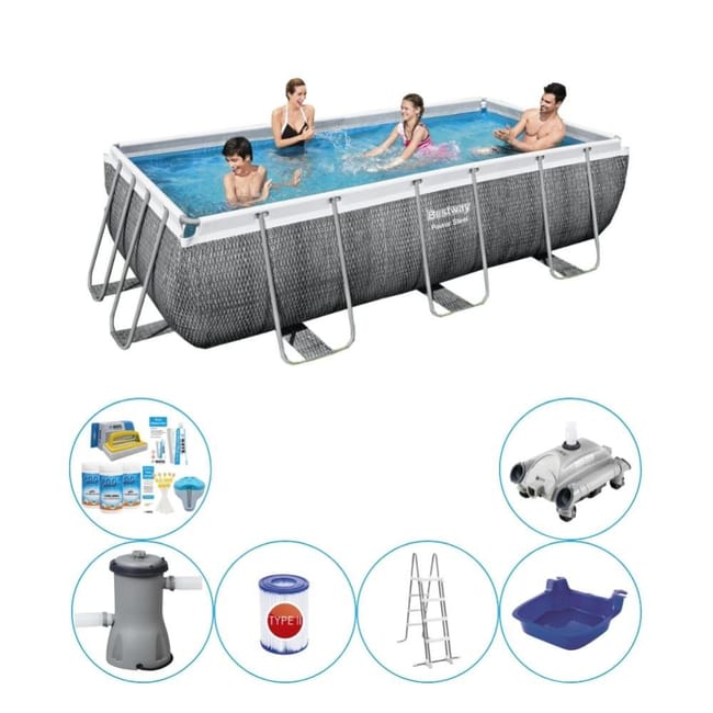 Ensemble de piscine tout en 1 – Bestway Power Steel Rotan Rect. 404x201x100 cm – Avec pompe de filtrage