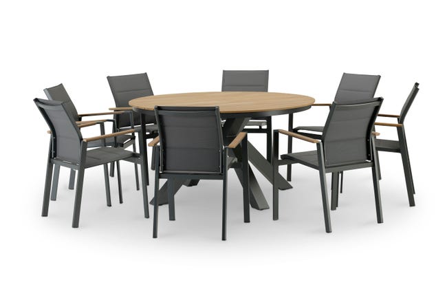 SEYCHELLES L MINEA REMBOURRE – Ensemble table et chaises de jardin – 10 places – Gris Anthracite
