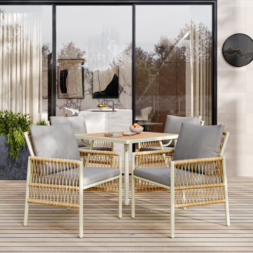 Ensemble de salle à manger de jardin,(ensemble de table à manger 5 pièces, 4 fauteuils, 1 table), couleur naturelle, avec coussin d’assise