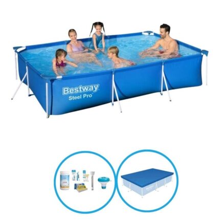 La piscine est équipée d’une pompe de filtrage, ce qui vous permet de faire un plongeon rafraîchissant ! Cette piscine rectangulaire peut accueillir 3 personnes. Grâce au cadre solide en acier revêtu de poudre et aux coins résistants, la piscine est toujours stable et offre des années de plaisir !