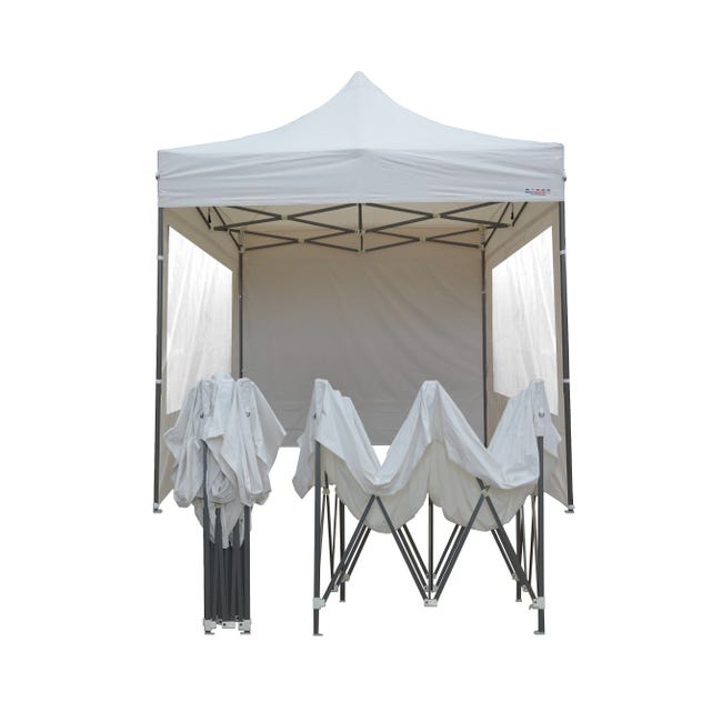 Accueil Tonnelle FRANCE BARNUMS -Tente Pliante 2x2m | Tonnelle 4m²| Abri, Jardin, Terrasse| Acier 31mm | Blanc | Murs amovibles avec Fenêtres