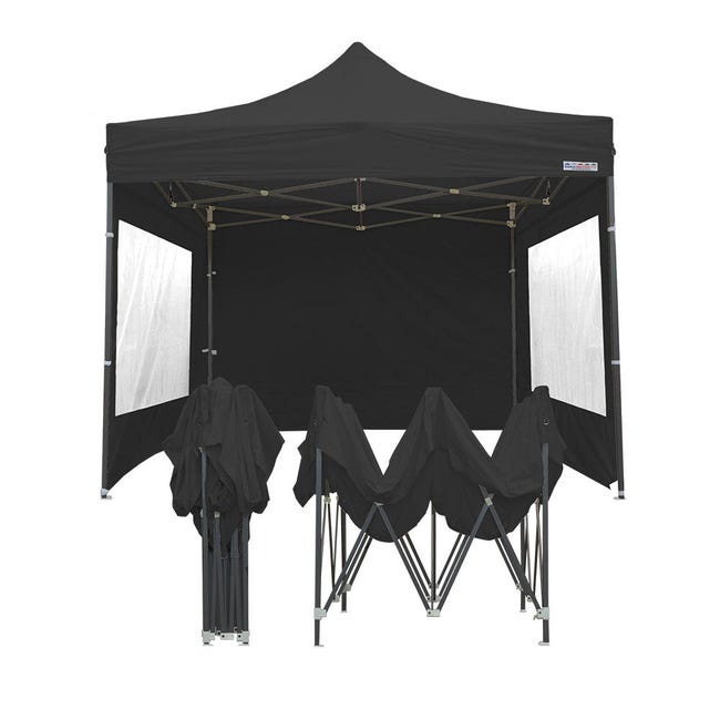 FRANCE BARNUMS -Tente Pliante 3x3m | Tonnelle 9m² | Abri, Jardin, Terrasse| Acier 31mm | Noir | Murs amovibles avec Fenêtres