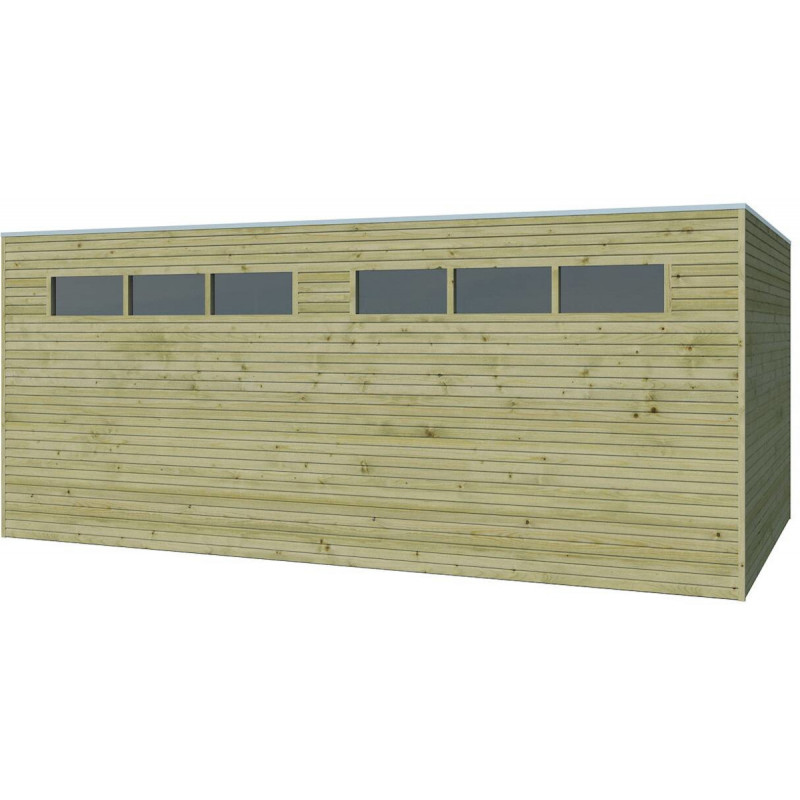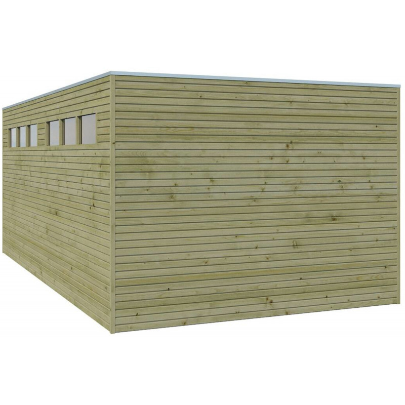 Garage Qube 15,3m² + extension 300cm en bois traité autoclave madriers 27mm avec double porte battante + fenêtre – Gardenas