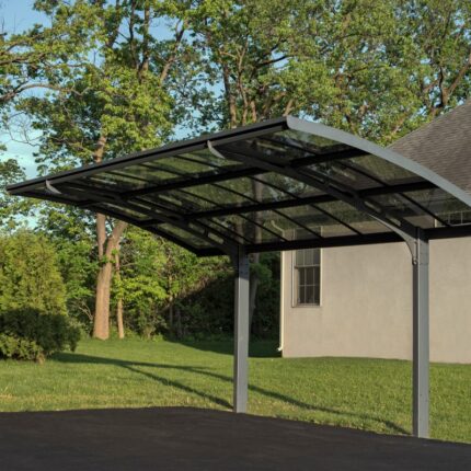 Carport en alu gris et polycarbonate Arizona Breeze 5000 – Palram – Canopia