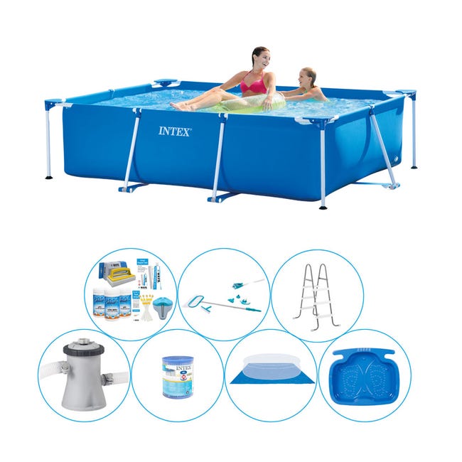 Intex Frame Pool Rectangulaire 220x150x60 cm – 8 pièces – Paquet de piscine tout en 1