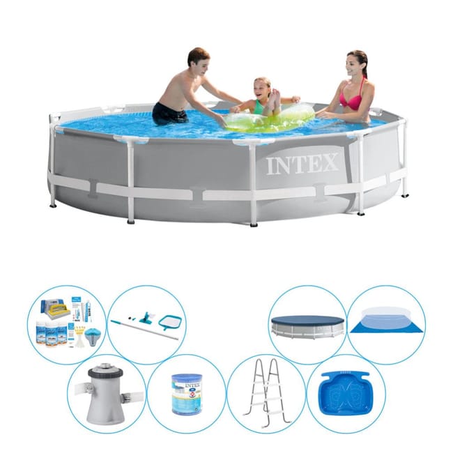 Avec la piscine Prism Frame, vous êtes en possession d’une piscine durable dont vous profiterez avec plaisir pendant de nombreuses années. Ce modèle de couleur gris clair très tendance fait partie de la série Intex Premium Pool Line, et cela le rend très populaire. La piscine Prism Frame a un cadre thermolaqué robuste qui garantit une grande stabilité. La piscine mesure 305 x 76 cm, offre de la place pour 4 personnes et s’installe en 30 minutes.Avec cet ensemble, vous avez en une fois tout ce dont vous avez besoin pour un entretien optimal de votre piscine.