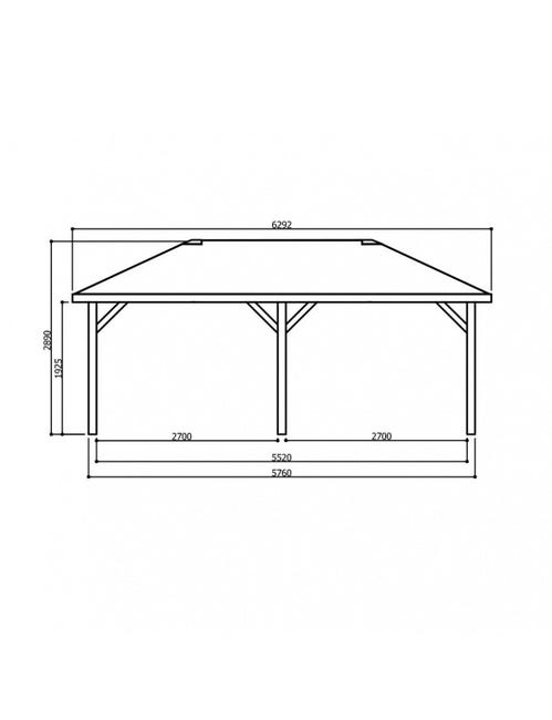 Kiosque en panneaux pré-montés en pin d’Europe du Nord certifié et imprégné. Surface 21,84 m².