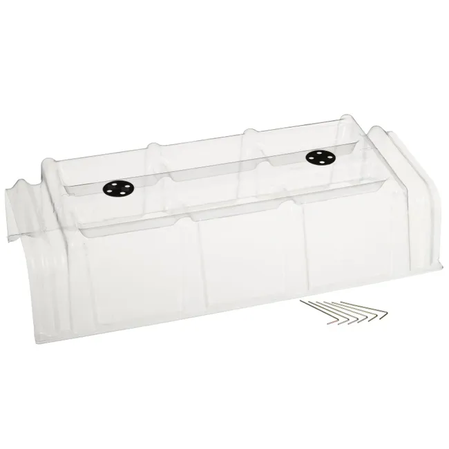 En polypropylène traité anti-UV, de forme rectangulaire, ce tunnel de forçage crée un effet de serre renforcé sur les semis au potager du début de printemps ou à l’automne. Ce tunnel récupère l’eau de pluie ou d’arrosage et est extensible par ajoût de modules. Il possède aussi 2 aérateurs pivotant pour réguler la ventilation. Livré avec 6 ancres métalliques pour une fixation aisée au sol.