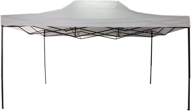 – SPÉCIFIQUES: Dimensions ouvert: H 3,1 m x L 4,5 m x P 3 m – Dimensions fermé: H 1,5 m x L 0,25 m x L 0,25 m – Hauteur max pieds: 1,90 m – Matériau de la structure: Fer – Matériau de revêtement: Polyester 600d oxford, 220gr/mq – Poids net: 10,8 kg – Poids brut: 11,8 kg – Dimensions de sac de transport: H 1,5 m x L 0,25 m x L 0,25 m – Couleur de sac de transport: Noir – Pour la fixation au sol il est recommandé d’utiliser des piquets ou des poids. – Notice de montage incluse