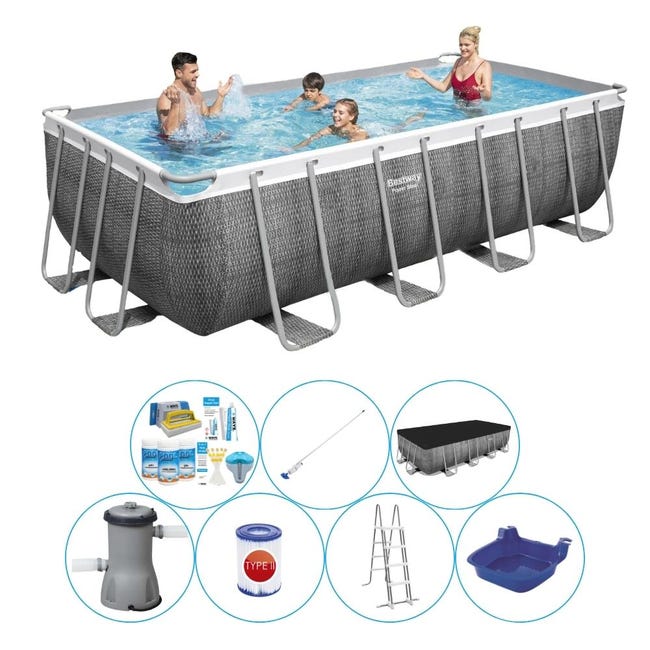 Réalisez vos rêves (et ceux de vos enfants) et barbotez cet été dans cette belle piscine rectangulaire Power Steel de Bestway. La piscine est fabriquée dans un matériau durable et durera donc des années. Le revêtement Power Steel rend la piscine très robuste et les risques de dommages sont très faibles. En outre, la piscine est équipée d’un système Seal & Lock, d’un cadre métallique résistant à la corrosion et d’une connexion sécurisée des éléments tubulaires qui assure une stabilité optimale.Ce kit contient tout ce dont vous avez besoin pour installer et entretenir votre piscine de manière optimale.