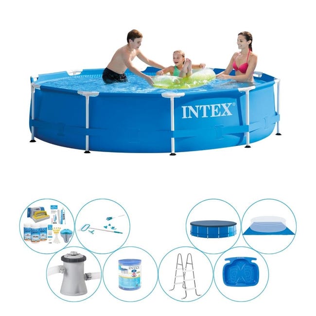 Paquet de piscine tout en 1 – Intex Metal Frame Ronde 305×76 cm