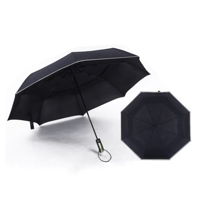Parapluie Resistant Aux Vents Compact, Ouverture Automatique – Manche Ergonomique – Dragonne – Deperlant – Bande Reflechissante Ø 103 CM- Noir