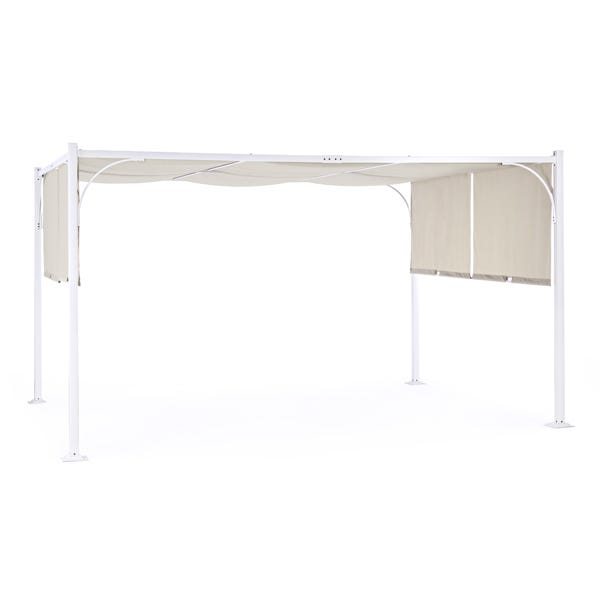 Gazebo 4×3 bianco in acciaio con telo copertura tortora Slide Le pergole da esterno ti permettono di allestire un’area adibita al relax in maniera semplice e rapida, in modo da goderti le giornate all’aperto in tutta freschezza. Slide è una pergola rettangolare autoportante progettata per durare a lungo e svolgere in maniera eccellente la sua funzione. Infatti, la struttura è in acciaio trattato per esterno tramite fosfatazione, in modo da migliorare la resistenza alla corrosione ed offrire aderenza alla verniciatura sovrastante, che quindi non viene via col tempo e garantisce lunga protezione. I pali portanti sono di dimensioni 60×60 mm, dotati di piastre di fissaggio a terra, mentre i traversi hanno sezione 25×50 mm. Il tetto di copertura è costituito da un robusto telo idrorepellente in poliestere con rivestimento in poliammide ed ha una grammatura di 180 gr/mq. Posiziona questo gazebo bianco in giardino o a bordo piscina, il suo design moderno ben si presterà ad arredare qualunque contesto di arredo esterno. Caratteristiche e dimensioni Modello: Slide Dimensioni: 3×4 m Altezza: 2,25 m Colore struttura: bianco Colore telo: tortora Struttura in acciaio fosfatato Verniciatura a polvere Telo in poliestere 180 gr/mq Rivestimento copertura in poliammide Sezione pali: 60×60 mm Sezione traversi: 25×50 mm Ideale per esterni Da assemblare (viteria inclusa)