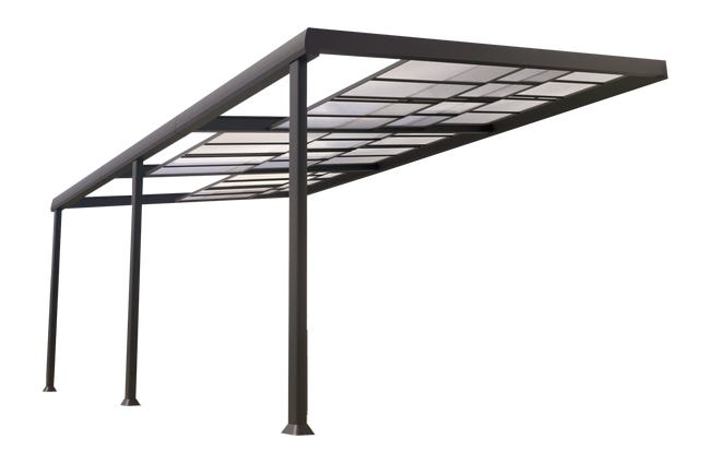 PERGOLA ADOSSEE EN ALUMINIUM 3.5X6M AVEC TOITURE COULISSANTE 3X3 VOLETS EN POLYCARBONATE