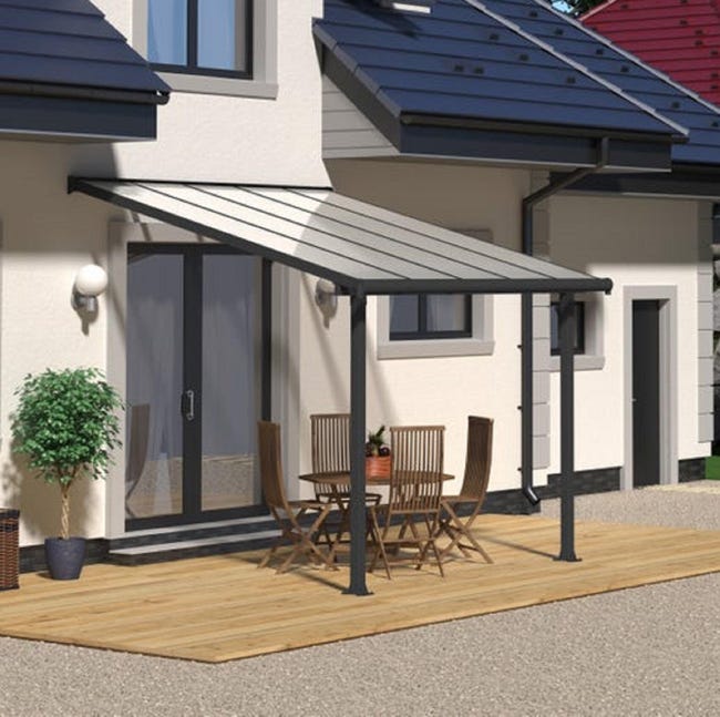 • Conçu pour résister aux intempéries, aux fortes charges de neige et aux vents violents. • Les panneaux de toiture en polycarbonate double-parois de 16 mm sont pratiquement incassables et hautement résistants aux chocs, 100% protégés contre les UV et offrent un blocage complet des UV. • Assemblage sûr, rapide et facile par soi-même, installation des panneaux de toits coulissants, profils prêts à assembler et pré-percés, toute la quincaillerie d’installation inclus • Connexion murale réglable et positionnement flexibles des poteaux • Structure robuste, renforcée avec des profilés en aluminium résistant à la corrosion et des connecteurs en acier galvanisé. • Ancrage inclus pour fixer la pergola à la surface de votre choix • Poteaux en aluminium robuste de 8 x 8 cm • Système de gouttière intégrée vous permet de canaliser et de recueillir facilement l’eau de pluie pour un système d’irrigation • Sans entretien – pas de rouille, de pourriture ou de pelure