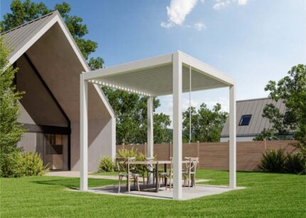 Pergola bioclimatique Huun Piano HUUN, 3x3m dim. ext. (cas échéant incl. débord de toit) revêtu par poudre, 9m² superficie totale