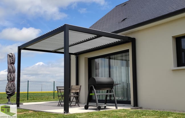 idéal pour profiter de sa terrasse extérieur en version couverte en cas de pluie (lames fermées), ou en version aérée en cas de forte chaleur (lames ouvertes)