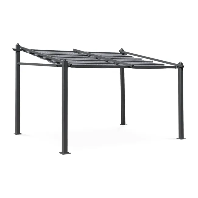 Le toit de cette pergola, en polyester est rétractable pour ne pas avoir à déplacer votre salon de jardin, votre table ou même la pergola si vous désirez profiter du soleil, ou au contraire profiter de l’ombre apportée par ce toit. Cette tonnelle Murum a été conçue pour pouvoir être adossée contre un mur. La toile de toit est montée sur rails avec un système de poulie, il vous suffit de tirer sur la corde pour la faire coulisser de la position fermée à la position ouverte, sans peine. Cette lanière, à bande velcro, vous permettra également de maintenir votre toile repliée.