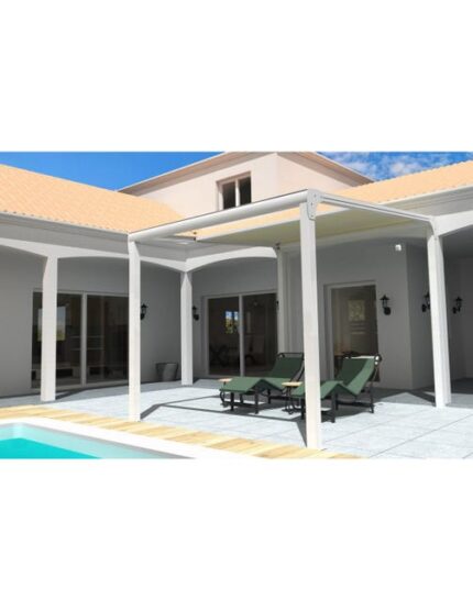 Pergola Isotoit® rétractable – ANGA – Motorisé à télécommande (RAL9010 – Blanc – 4.00m x 4.15m)