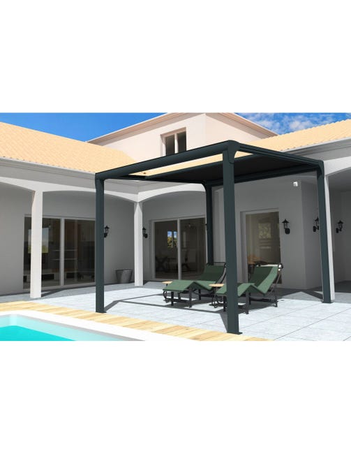 Pergola toile TILA 3,00x3,00m Motorisé à  télécommande + manœuvre de secours (Gris Graphite - Blanc)