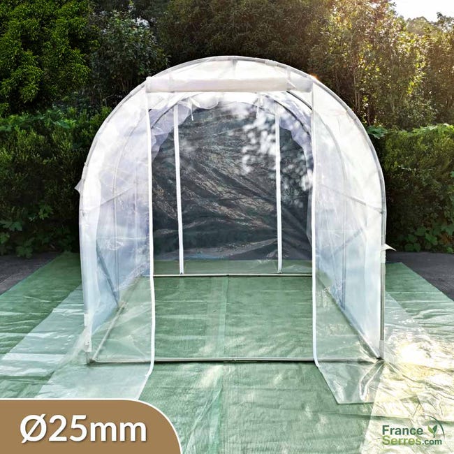 Cette serre tunnel avec bâche thermique et portes enroulables de 4m² a été conçue pour s’adapter aux petits jardins. Son excellent rapport qualité/prix permet à tous les jardiniers de se lancer dans la création d’un potager. Profitez du plaisir de cultiver vous-même vos légumes ! Cette serre possède un pied droit de 1m qui vous permettra d’optimiser vos cultures en hauteur. Vous pourrez faire pousser facilement des plants de tomates tout en associant des plantations au sol bénéfiques à leur croissance : plantes aromatiques, légumes ou fleurs. La structure de cette serre est en acier galvanisé (pas de corrosion) de 25mm de diamètre, renforcée par des barres de contreventement pour lui assurer une bonne stabilité au vent. La bâche thermique transparente traitée anti-UV de qualité UPF 50+ protégera efficacement vos plantations. Elle réduira les pertes de chaleur, minimisant les variations de températures néfastes au bon développement de vos cultures.