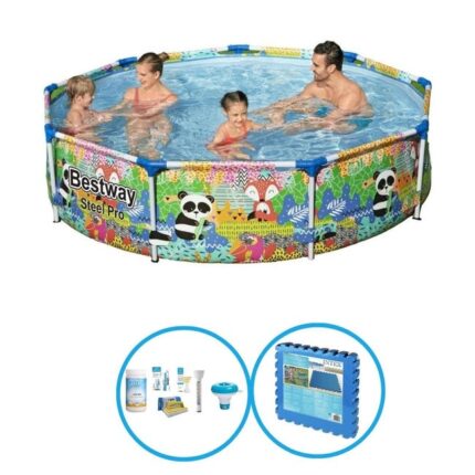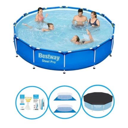 Piscine métal hors sol OSMOSE coloris aspect bois. Dimensions hors tout extérieures : (diam.xh) 3,95 x 1,32 m diamètre intérieur 3,65 , paroi 40/100ème en acier ondulé galvanisé à chaud, pré-laqué. Poteaux verticaux en acier galvanisé à chaud et laqués. Margelles largeur 18 cm . Pré-découpe skimmer et buse de refoulement. Liner 50/100ème (42,5/100ème), couleur beige uni, traité anti-UV, soudé haute fréquence. Tapis de sol . Echelle de sécurité 1,40m, 2 x 4 marches avec plate-forme, acier galvanisé et laqué blanc, marches plastiques anti dérapantes. Kit de filtration 4m³/h média filtrant Aqualoon inclus, plus performant, économique, facile à transporter, écologique. capacité en eau : 12m³, profondeur d’eau : 1,20m