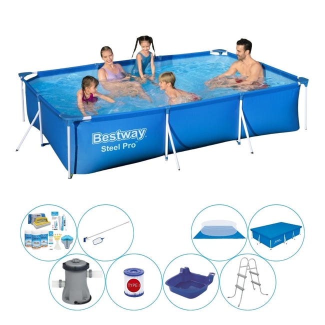 Vous souhaitez vous rafraîchir pendant les chaleurs estivales et profiter d’une ambiance vacancière à la maison? Avec la piscine Steel Pro de Bestway, c’est comme si c’était fait! Installée en à peine 20 minutes, cette piscine au cadre en acier inoxydable est d’une grande solidité. La protection triple couche de Duraplus vous garantit une grande durabilité et limite les risques d’endommagement. La piscine peut accueillir jusqu’à 4 personnes et vous offre le meilleur de l’été dans votre jardin pour de nombreuses années.Ce kit contient tout ce dont vous avez besoin pour installer et entretenir votre piscine de manière optimale.