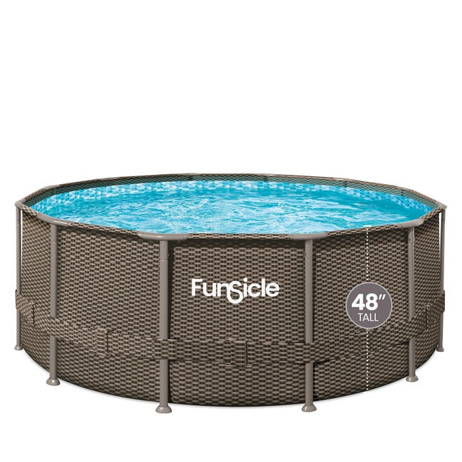 Description détaillée de la piscine tubulaire ronde Funsicle Ø 3,66m x h1,22m Piscine tubulaire ronde Marque: Funsicle Modèle: Oasis™Pool Système d’emboitement des tubes SmartConnect™ Liner Toughmesh™ 3 couches résistant à la perforation Dimensions: Diamètre: 3,66m Hauteur: 1,22m Hauteur d’eau: 1,05m Volume d’eau: env. 11070 litres Épurateur à cartouche RX 600 + 1 cartouche Type D Échelle de sécurité SureStep™ 1 tapis de sol + 1 bâche de protection 1 kit d’entretien Épuisette de surface, aspirateur de fond et manche télescopique Coloris de finition extérieure: Marron tréssé
