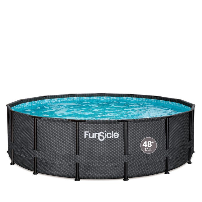 Description détaillée de la piscine tubulaire ronde Funsicle noire Ø 4,57m x h1,22m Piscine tubulaire ronde Marque: Funsicle Modèle: Oasis™ Designer Pool Système d’emboitement des tubes SmartConnect™ Liner Toughmesh™ 3 couches résistant à la perforation Capacité: 7 à 8 personnes Dimensions: Diamètre: 4,57m Hauteur: 1,22m Hauteur d’eau: 1,05m Volume d’eau: env. 17420 litres Épurateur à cartouche RX 1000 + 1 cartouche Type C Échelle de sécurité SureStep™ 1 tapis de sol + 1 bâche de protection 1 kit d’entretien Épuisette de surface, aspirateur de fond et manche télescopique Coloris de finition extérieure: Noir tressé