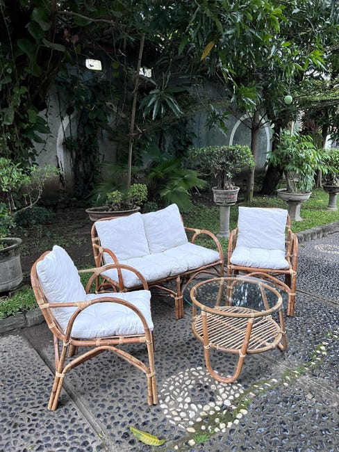 D’une beauté exceptionnelle, cet ensemble de mobiliers naturel peut être disposé par prédilection dans votre salon, ou jardin pour donner un goût irrésistible à votre intérieur ou sous votre patio. Composé d’une table basse, de 2 fauteuils, d’un canapé, avec leurs coussins ce salon saura répondre convenablement à vos envies. Avec leur aspect naturel en rotin tressé, la table et les chaises font sans doute partie des meubles de décoration les plus importants à posséder. En effet, ils vous permettront de vous installer confortablement grâce à leur assise et dossiers très relaxants.Tous les produits installés à l’extérieur nécessitent un entretien particulier, évitez de les exposer aux intempéries et à l’humidité ainsi que de les laisser au soleil pendant une longue période. Rangez-les à l’abri lorsque vous ne les utilisez pas, en particulier pendant les mois d’hiver