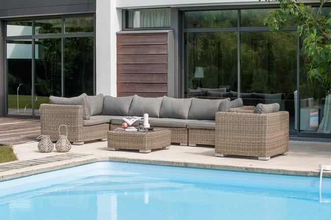 Salon de jardin en résine tressée modulable avec coussins déhoussables