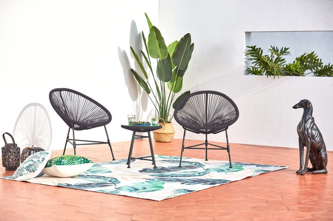 Le design et le confort de l’ensemble Acapulco ne vous laissera pas indifferent ! Inspire des fauteuils Mexicains des annees 50, l’assise des fauteuils est agreable et confortable de part la composition en fils de polyethylène, un materiau très resistant aux conditions naturelles qui se detend pour s’adapter à la morphologie du corps. L’armature de la table basse ainsi que des fauteuils est en acier finition epoxy. C’est un produit qui possède une duree de vie longue et qui se conserve très bien au fils des annees. Sa table basse est très pratique pour garder vos boissons, livres ou encore crème solaire et passer un moment de detente et de plaisir inoubliable !