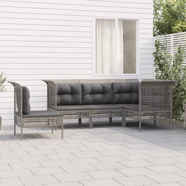 Salon de jardin 5 pcs avec coussins Gris Résine tressée vidaXL