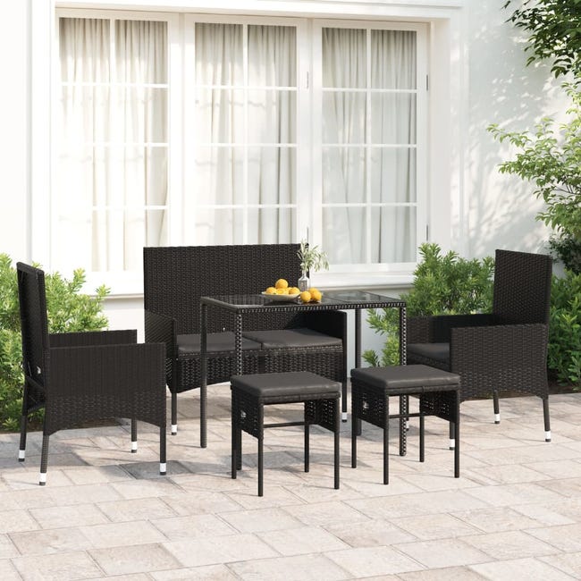 Accueil Salon de jardin bois Salon de jardin 6 pcs avec coussins Noir Résine tressée vidaXL