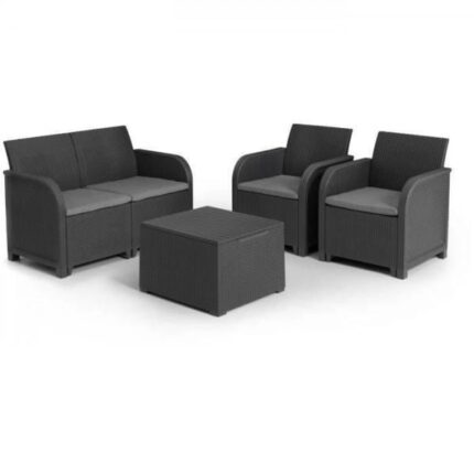 Craquez pour ce magnifique salon de jardin Guahana aussi confortable que tendance ! Ses gros coussins de 14 cm d’epaisseur et d’une densite de 1500G vous feront vous sentir comme dans un cocon, leurs attaches leur permettent de bien tenir sur les fauteuils de ce salon de jardin. La forme de ses assises vous permettra d’être confortablement installes pour profiter d’une pause ensoleillee cet ete ! Sa structure en acier vous assure solidite et robustesse. La resine à l’aspect de rotin est tressee à la main et ses finitions sont travaillees pour vous offrir ce motif original et charmant. Ce salon de jardin ajoutera du cachet à votre jardin à coup sûr et se mariera à merveille avec une decoration d’exterieur bohème ou tropicale !