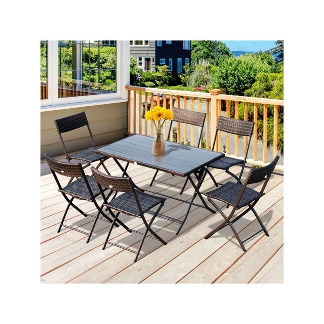 Accueil Ensemble table et chaise de jardin Salon de Jardin Bistrot 7 Pièces Montparnasse en Résine Tressée Marron chocolat