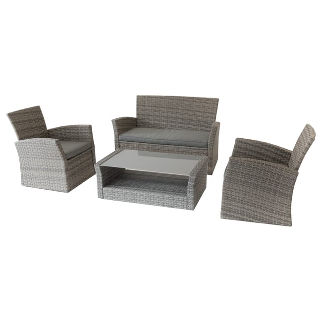 Structure traitée Epoxy Anti-rouille. Produit traité contre la décoloration. Coussins déhoussables pour permettre un nettoyage facile. Tissu traité déperlant permettant à l’eau de glisser sans pénétrer dans la matière. Compatible avec la ref 146754 pour protéger votre mobilier du soleil et des intempéries. Type de Traitement: : Traité Epoxy Nombre de personnes/Temps de montage: : 2 personnes / 40 min Grammage : : 180 g/m² Poids Max autorisé par personne: : 110 Kgs Coussins déco (nbre/non): ? : Non Coussin déhoussables o/n: : Oui Nombre de coussin d’assise : 4