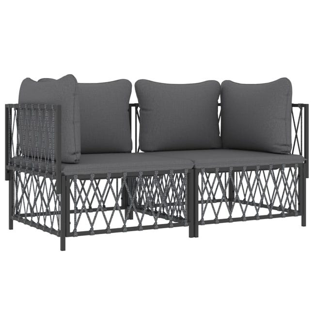 Accueil Salon bas de jardin Salon de jardin meuble d’extérieur ensemble de mobilier avec coussins 2 pièces anthracite acier 02_0018288