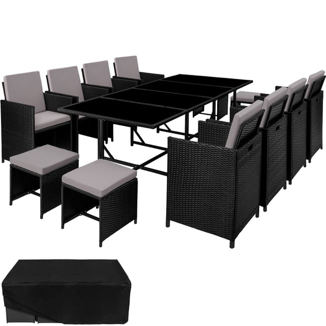 – Housse de protection incluse : Lorsqu’il n’est pas utilisé, une housse de protection adaptée peut être glissée sur les éléments repliés. Elle protège efficacement du vent, du soleil, de la poussière et d’autres influences extérieures, contribuant ainsi à la longévité de cet ensemble extérieur.