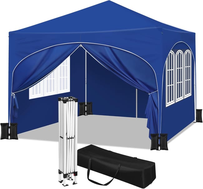 - La tente pliante de 3×3 m offre un bon espace d’ombrage pour 6 à 10 personnes. Elle est convenable pour le terrasse, le jardin, le camping, le festival, le marché aux puces, la foire, etc.