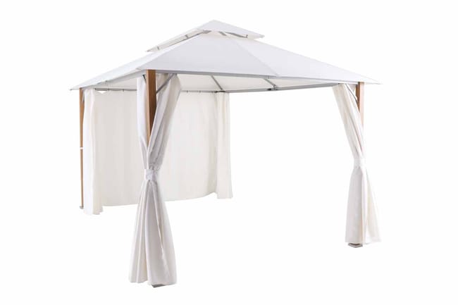Le gazebo Naterial Agora protège vos invités du soleil. Avec une grande surface couverte, vous pouvez facilement placer une table et ses chaises en dessous. Son auvent rectangulaire très épais de 2,7×3,7 mètres est hydrofuge et bloque 100% des rayons UV. Le gazebo est équipé de rideaux pour vous permettre d’être complètement abrité et protégé des insectes. Sa structure en acier ne rouille pas et résiste aux intempéries. Pour prolonger la durée de vie de votre gazebo, l’auvent peut être remplacé.