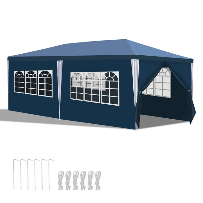 【Bâche de haute qualité】La tente de réception est fabriquée dans un matériau PE 100g/m² de haute qualité qui est hydrofuge, résistant et protégé contre les UV, de sorte que vous pouvez profiter de votre fête en plein air. Le chapiteau a également une fermeture éclair sur un côté pour un accès facile.