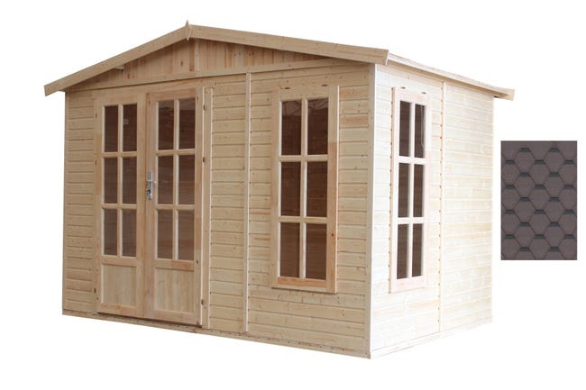 La toiture est envoyée dans plusieurs cartons séparément du chalet. Des bardeaux de toiture 3 m², les pièces du faîtage et les clous se trouvent dans un seul emballage.