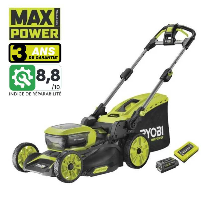 Tondeuse tractée Brushless 36V Max Power 6.0Ah Ryobi en Pack 599,99€ TTC