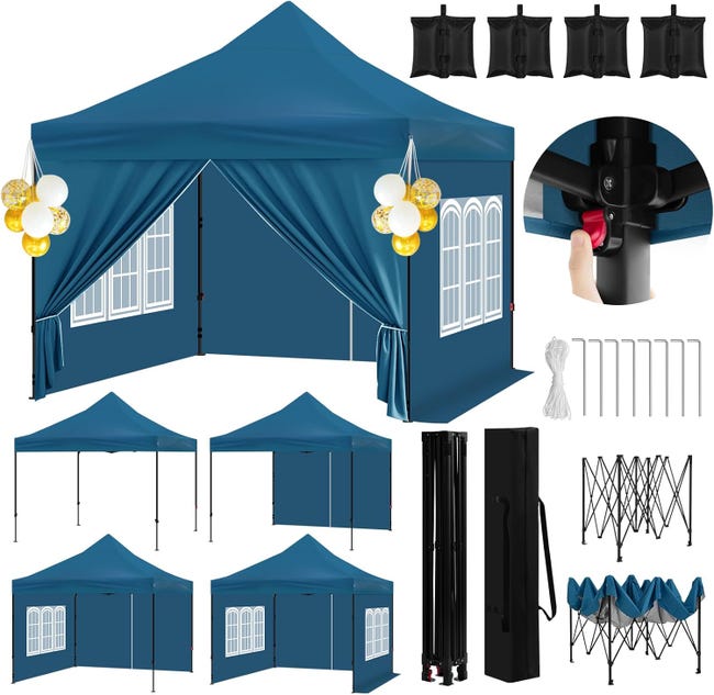 - Les 4 parois latérales amovibles comprennent 2 parois avec des fenêtres et 2 avec des portes zippées, pour une bonne vue et une ventilation.